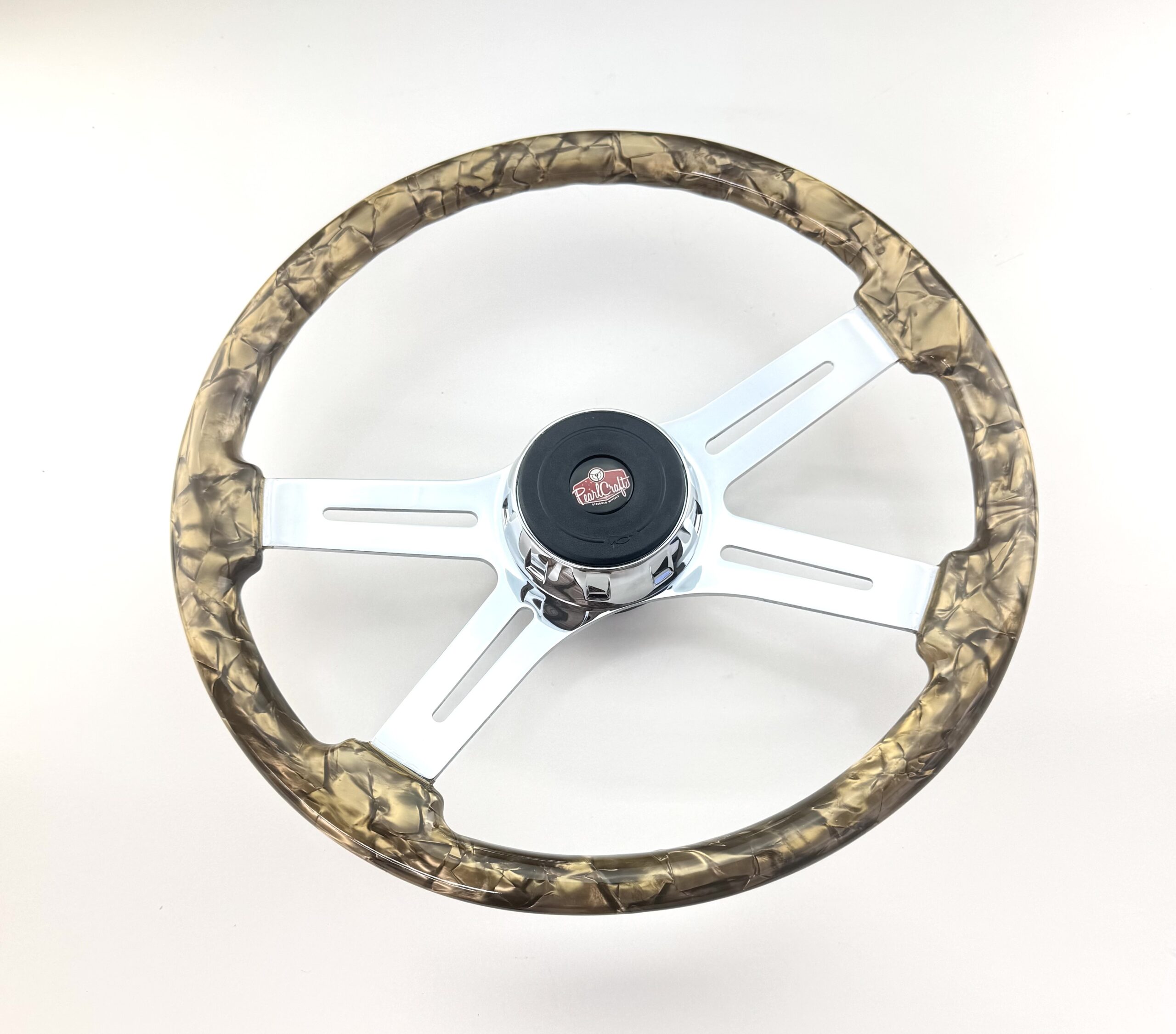 Forever Sharp – Bare Muscle Polished – 18″ half pearl with polished alloy spokes and back.